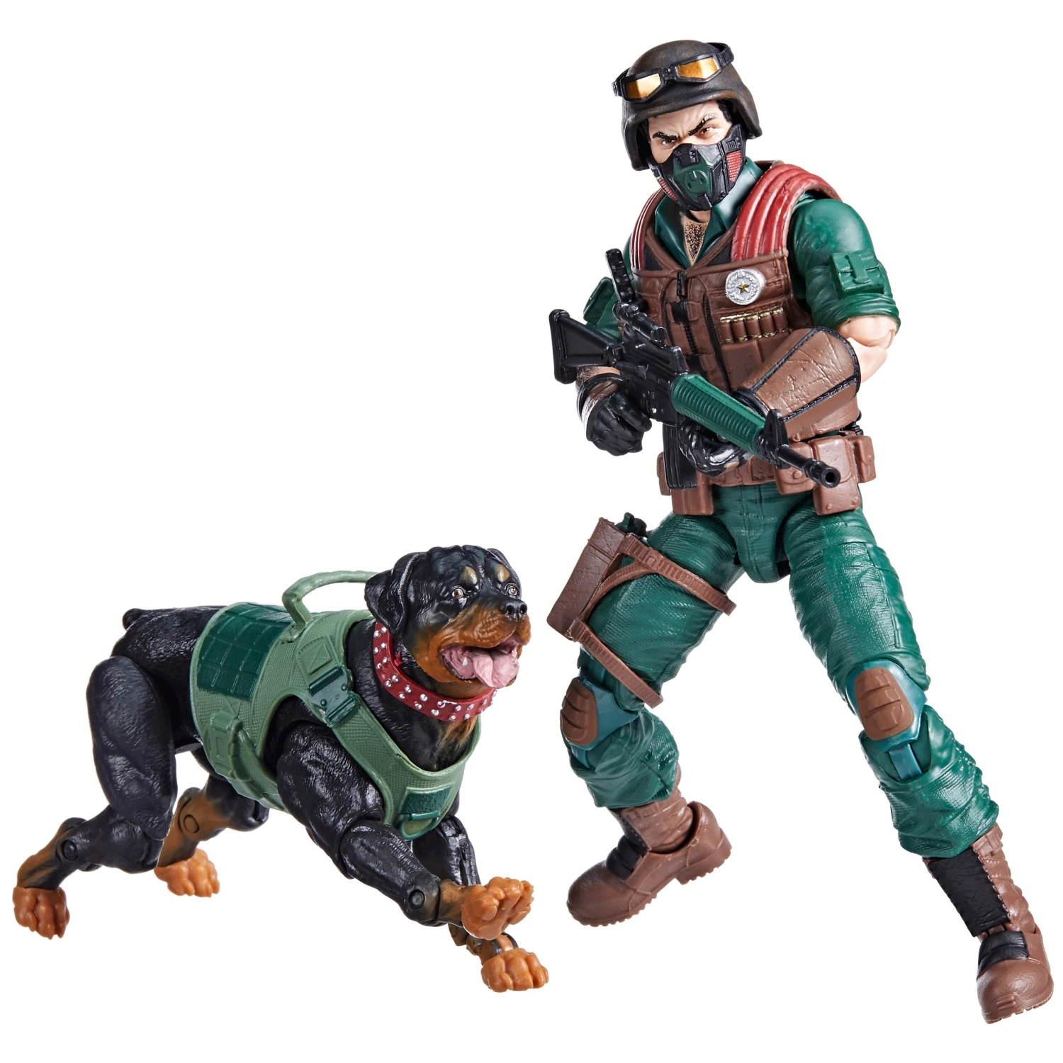 - Features a classic design updated to bring the G.I. Joe K-9 Dog Handler and his Rottweiler into the modern era and 16 accessory pieces inspired by the character’s rich history