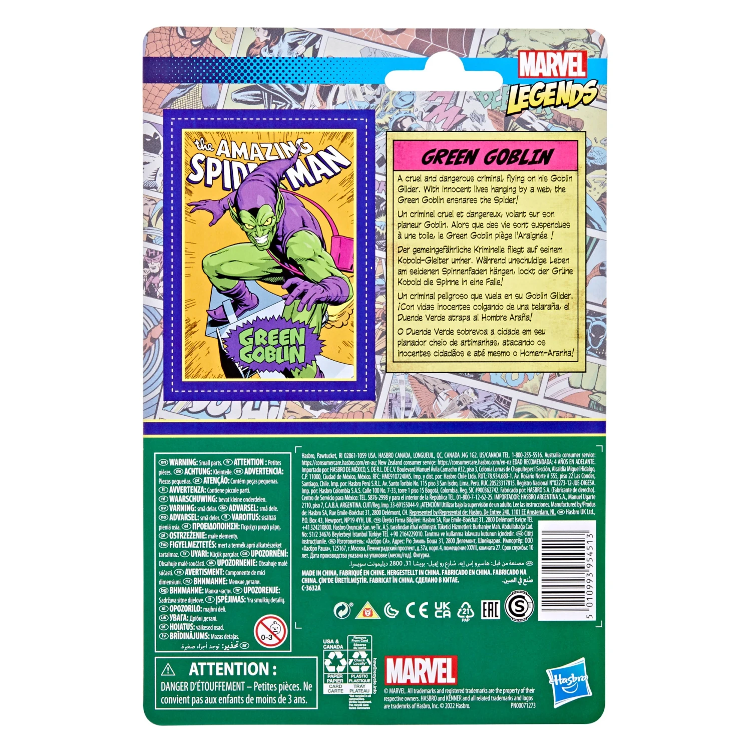 A cruel and dangerous criminal, flying on his Goblin Glider. With innocent lives hanging by a web, the Green Goblin ensnares the Spider!