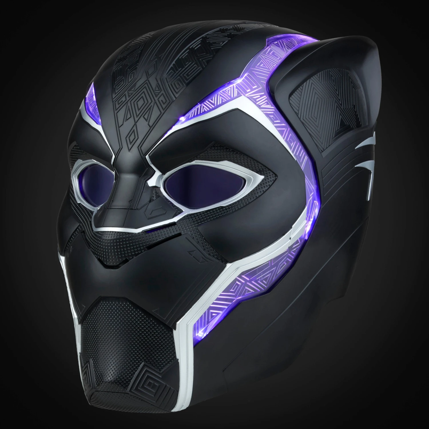 - Press the button on the side of the helmet to trigger light FX inspired by Black Panther’s vibranium suit in Marvel Studios’ Black Panther!