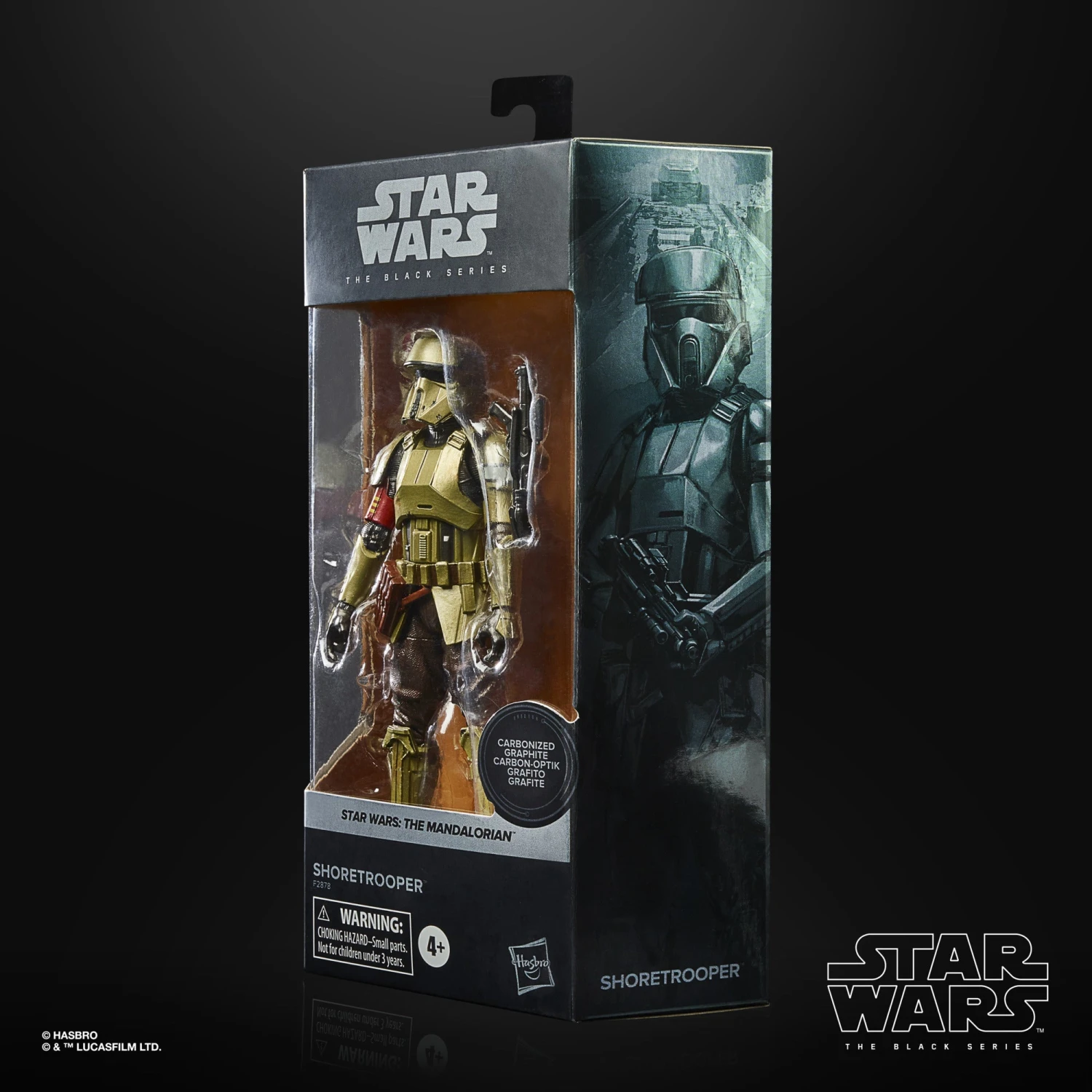 The 6-inch-scale Carbonized Collection Shoretrooper figure is carefully detailed to look like the character from The Mandalorian live-action series on Disney+, featuring premium detail, multiple points of articulation, and a metallic finish.